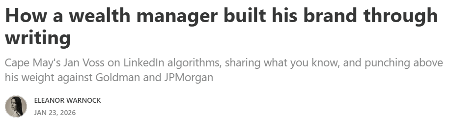 As a result, we have two objectives for this newsletter in 2026: One, make it even more practical to our target audience at Cape May, especially affluent entrepreneurs with a net worth between 2 and 25M€, as well as entrepreneurial, ‘small’ family offices. That means more practical examples, more case studies, and more insights into how we work. Two, we’ll share an additional monthly article highlighting what has happened at Cape May over the past month. That includes things that constitute big news to our small firm (see below!), examples of how we helped clients this month, and if relevant, media appearances. But also, in case you missed it, a quick summary of what we covered on the newsletter in the prior month - since we know that even our most loyal readers might sometimes miss one of our articles.